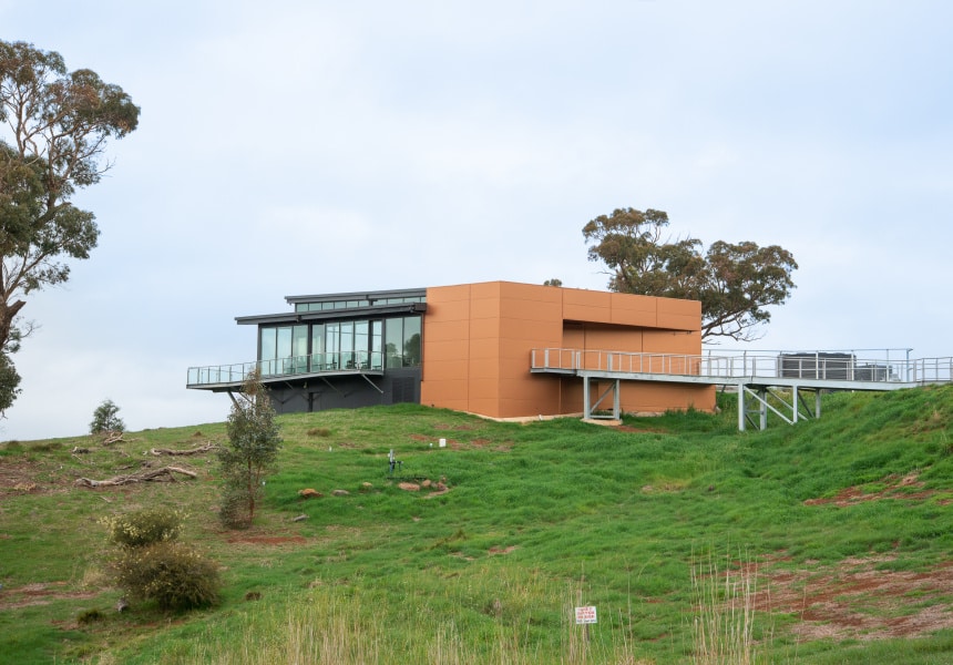 Construction of winery on east side of Mt Camel Range in central Victoria. Architectural